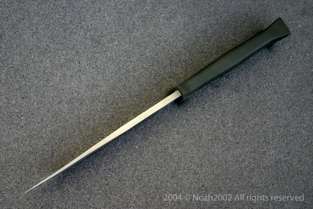Нож называется экспедиционный, но почему то в голову приходит не экспедиция геологов, а экспедиция генерала Скобелева по Средней Азии. Впрочем нож ни что иное как рабочий клон Рандлла, я бы сказал лучший вариант, возможно для полного счастья не хватает БорКарбидного или ТитанНитридного покрытия, но в остальном никаких особых пожеланий не возникает. Приходит в голову G10, но не знаю, все же мягкий пластик приятнее на ощупь, разьве что огня боиться. Да конечно стальная или лучше титановая гарда была бы к месту. Но это все мелочи, нож великолепен.