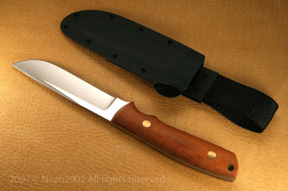 Здесь KS-7 сфотографирован с другим известным охотничьим ножем - Баком Авангардом. Дозьер то же такие ножи делает - называет их "Классическими моделями", но в основной массе перешел на более технологичные накладные микартовые рукояти, это его философия, делать доступные ножи, которые будут использоваться а не лежать в коллекциях.